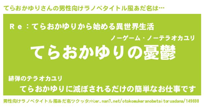 | 女子向けラノベタイトル風あだ名 | 『(仮)てらおかゆりのやんごとなき事情』 |