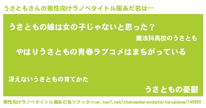 | ポケモン風あだ名 | 『ウサトダネ』『ヒウサトモ』 |