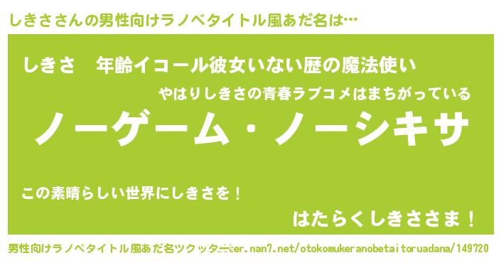 | 女子向けラノベタイトル風あだ名 | 『しきさ恋絵巻』『しきさの玉の輿計画!』 |