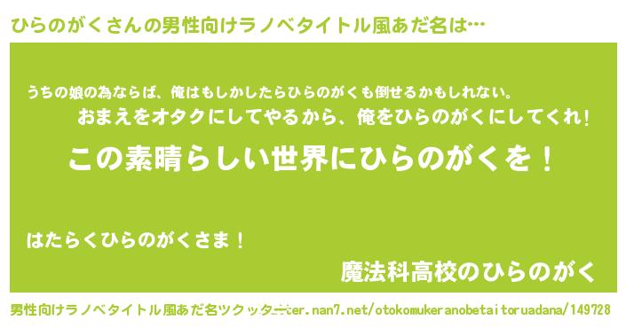 | 女子向けラノベタイトル風あだ名 | 『悪役ひらのがくに転生したようですが、知った事ではありません』 |