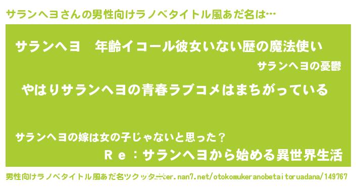 | 女子向けラノベタイトル風あだ名 | 『サランヘヨ伯爵の花嫁』 |