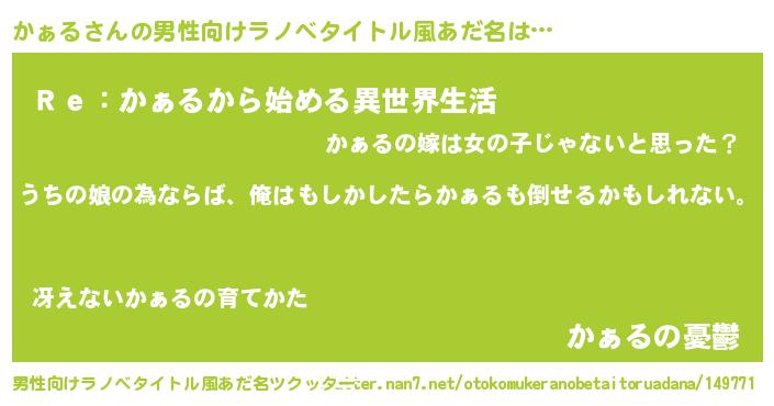 | 女子向けラノベタイトル風あだ名 | 『かぁるの婚約者』 |