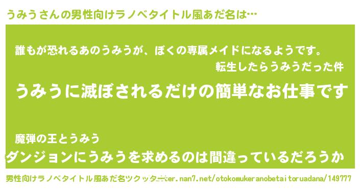 | 意味不明あだ名 | 『永久保存うみう』『たけのこ科うみう属』 |