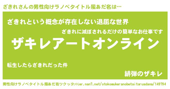 | 胡散臭い通販商品みたいなあだ名 | 『モテモテ間違いなし霊験あらたかなお札…その名も「ざきれ」』 |