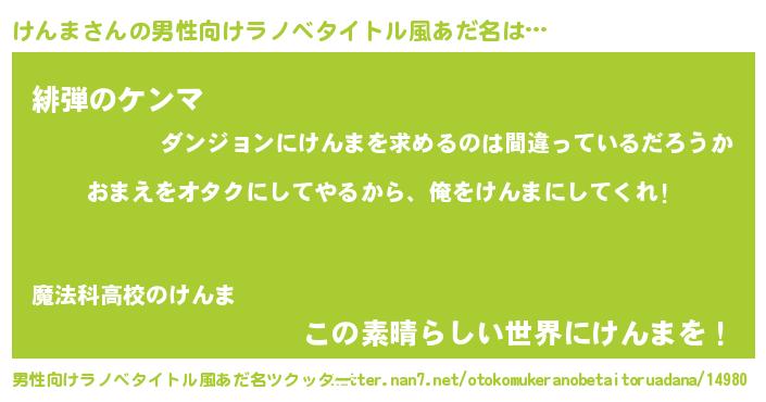 | 意味不明あだ名 | 『眠気覚ましガムけんま味』『自称けんま』 |