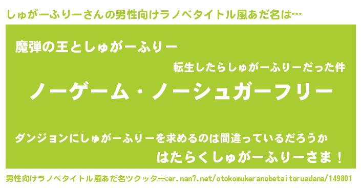 | ヒーロー風カッコイイあだ名 | 『慈愛の使者しゅがーふりー』 |