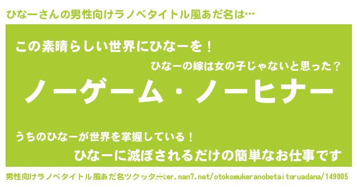 | 女子向けラノベタイトル風あだ名 | 『ひなー恋絵巻』『横柄ひなーと宰相陛下』 |