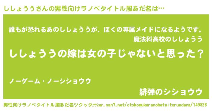 | ヒーロー風カッコイイあだ名 | 『炎刃騎士シシ』『ネオシショウウ』 |