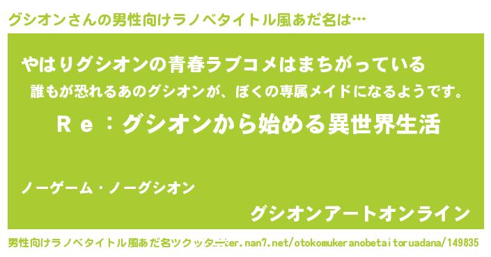 | 意味不明あだ名 | 『自称グシオン』『グシオンフォーエバー』 |
