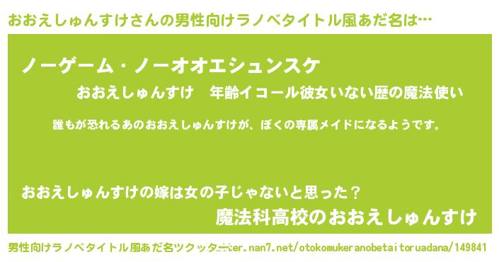 | 意味不明あだ名 | 『永久保存おおえしゅんすけ』 |