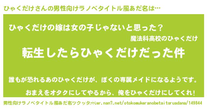 | 女子向けラノベタイトル風あだ名 | 『ひゃくだけの玉の輿計画!』 |
