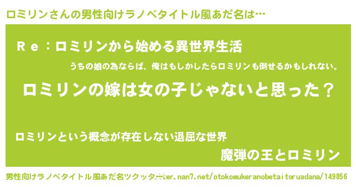 | 女子向けラノベタイトル風あだ名 | 『ロミリン様がみてる』『闇のロミリン』 |