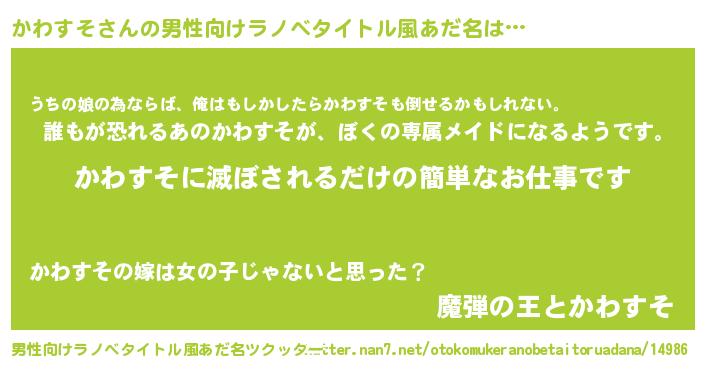 | 胡散臭い通販商品みたいなあだ名 | 『世界が平和になる高級そうな壺…その名も「かわすそ」』 |