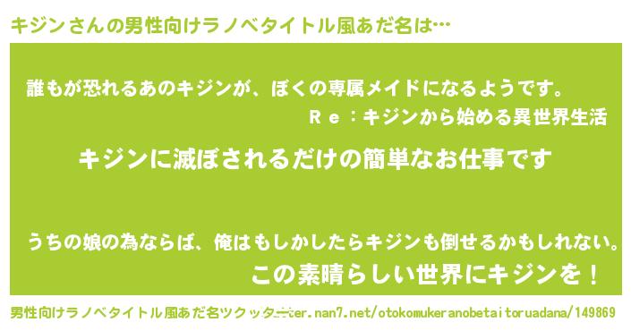 | ヘコむあだ名 | 『キジン(笑)』『なまこ酢』 |