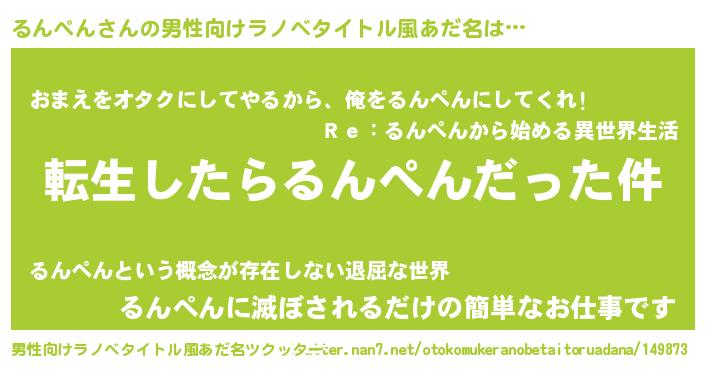 | ヘコむあだ名 | 『るんぺん(笑)』『牛乳』『るんを』 |