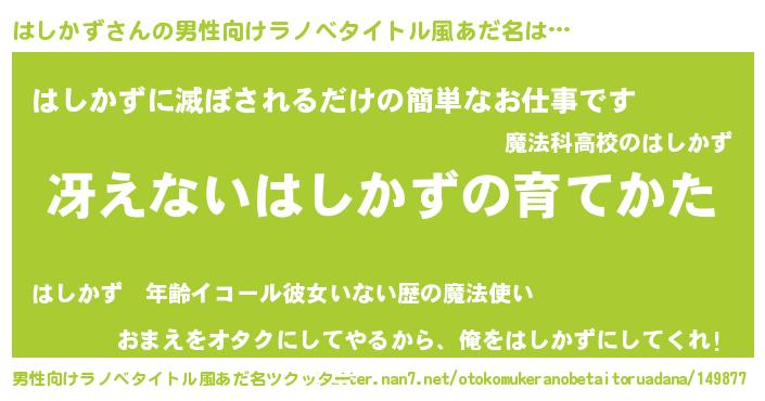 | ヘコむあだ名 | 『はしかず(小並感)』『牛乳』 |