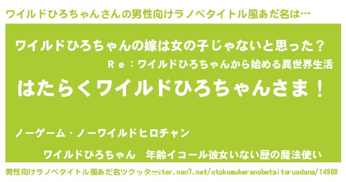| 意味不明あだ名 | 『とにかく怪しいワイルドひろちゃん』 |
