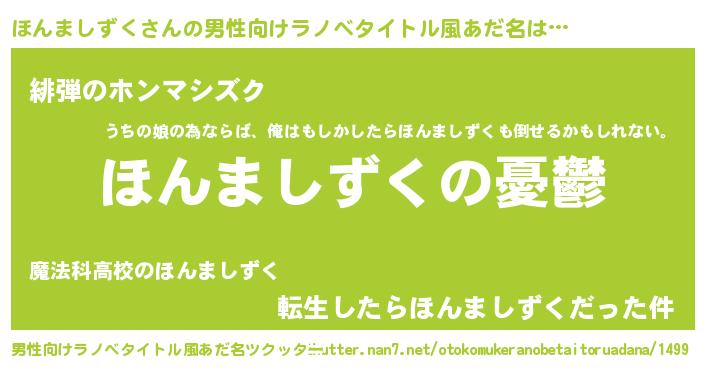 | 胡散臭い通販商品みたいなあだ名 | 『必ず成功する霊験あらたかなお札…その名も「ほんましずく」』 |