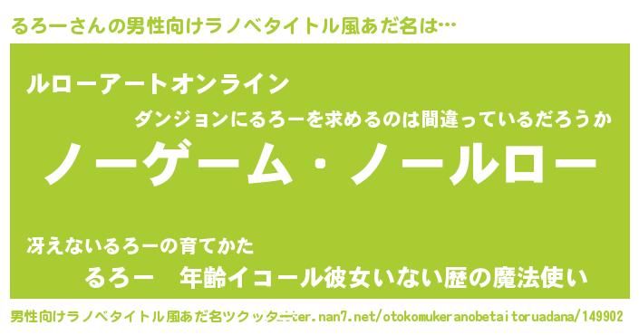 るろーさんの男性向けラノベタイトル風あだ名をツクッター!