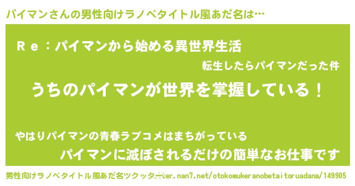 | 胡散臭い通販商品みたいなあだ名 | 『芸能人もオススメする高麗人参…その名も「パイマン」』 |