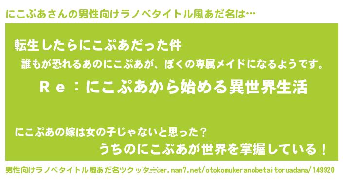 | 女子向けラノベタイトル風あだ名 | 『にこぷあストレイドッグス』 |