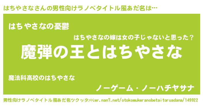 | 意味不明あだ名 | 『住所不定無職はちやさな(5歳)』 |