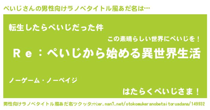 | 女子向けラノベタイトル風あだ名 | 『闇のぺいじ』『ぺいじの玉の輿計画!』 |