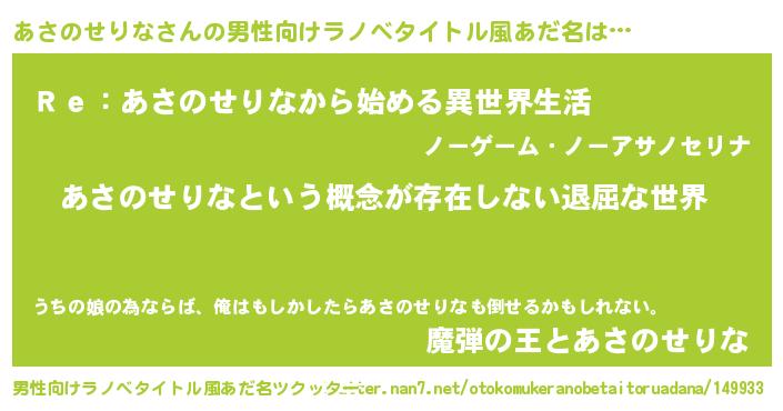 | 意味不明あだ名 | 『永久保存あさのせりな』 |