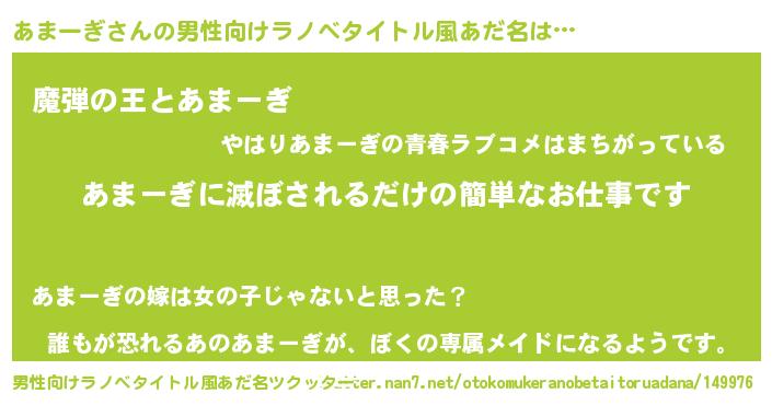 | 胡散臭い通販商品みたいなあだ名 | 『あなたにだけ特別に提供する世界で10本だけ現存している希少なブランデー…その名も「あまーぎ」』 |