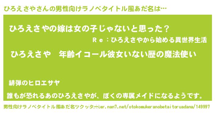| ヒーロー風カッコイイあだ名 | 『天弓騎士ヒロ』『ネオヒロエサヤ』 |