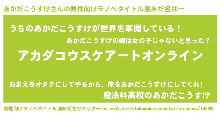 | 女子向けラノベタイトル風あだ名 | 『誰かこのあかだこうすけを説明してください! ~契約から始まるウェディング~』 |