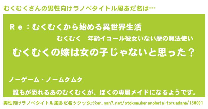 | 女子向けラノベタイトル風あだ名 | 『むくむく様がみてる』『闇のむくむく』 |