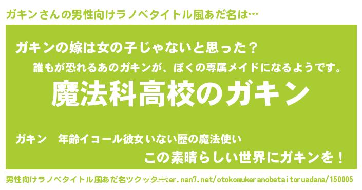 | 女子向けラノベタイトル風あだ名 | 『ガキンなんてお断りですっ。』 |