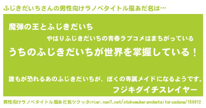 | 女子向けラノベタイトル風あだ名 | 『男装ふじきだいちの憂鬱な任務』 |