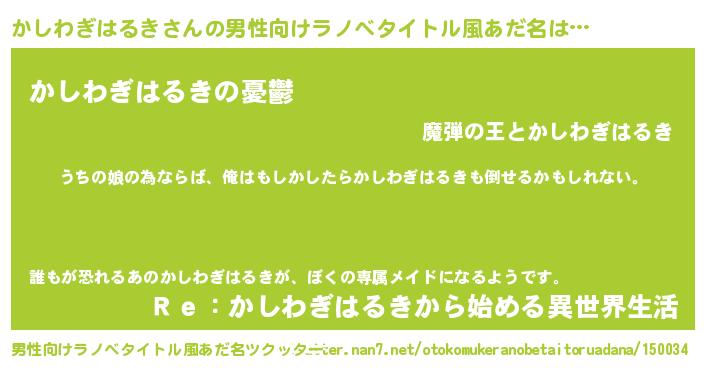 | 肩書あだ名 | 『かしわぎはるき大統領』 |