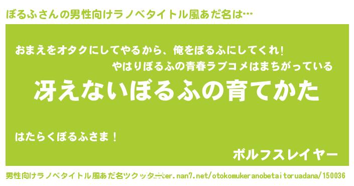 | ヘコむあだ名 | 『豆乳』『ぼるもー』『ぼるを』 |