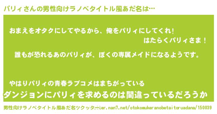 | 胡散臭い通販商品みたいなあだ名 | 『前代未聞の健康食品…その名も「パリィ」』 |