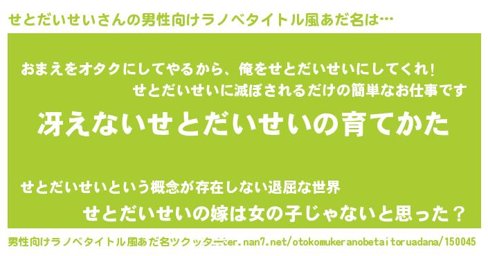 | 女子向けラノベタイトル風あだ名 | 『男装せとだいせいの憂鬱な任務』 |