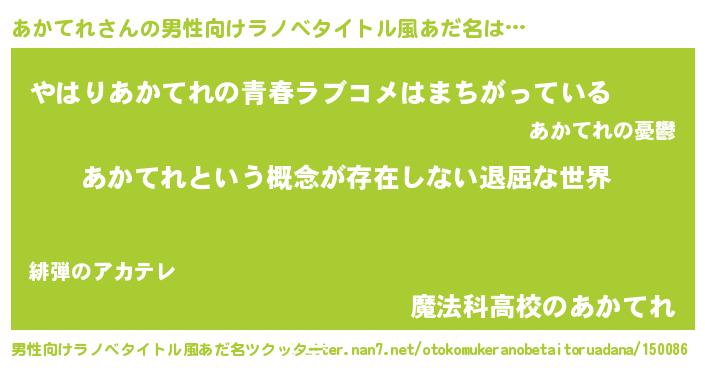 | 女子向けラノベタイトル風あだ名 | 『異世界で失敗しない100のあかてれ』 |