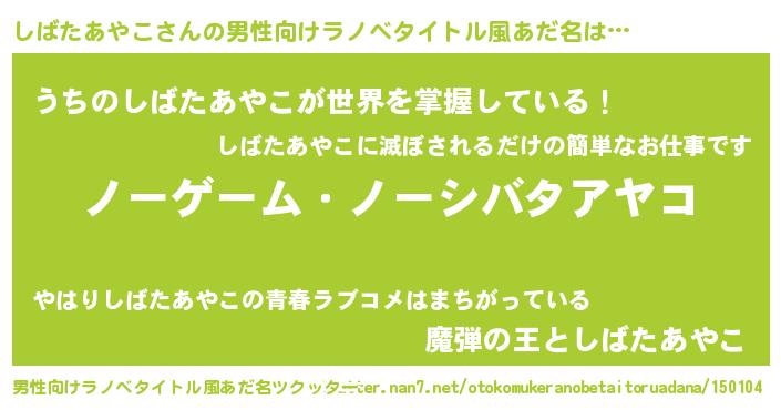 | 女子向けラノベタイトル風あだ名 | 『死神しばたあやこの再婚』 |