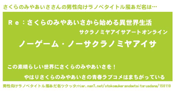 | 胡散臭い通販商品みたいなあだ名 | 『モンドセレクションを受賞した隕石のかけら…その名も「さくらのみやあいさ」』 |