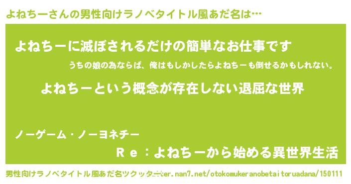 よねちーさんの男性向けラノベタイトル風あだ名をツクッター!