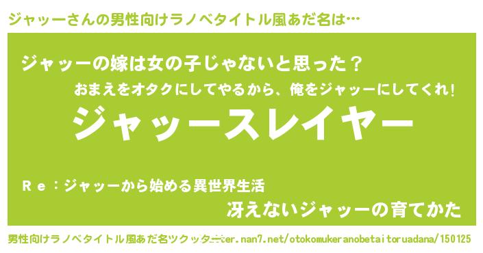 | ヒーロー風カッコイイあだ名 | 『暗黒騎士ジャ』『慈愛の使者ジャッー』 |