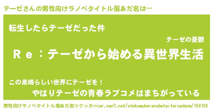 | 女子向けラノベタイトル風あだ名 | 『闇のテーゼ』『テーゼの雑貨屋さん』 |