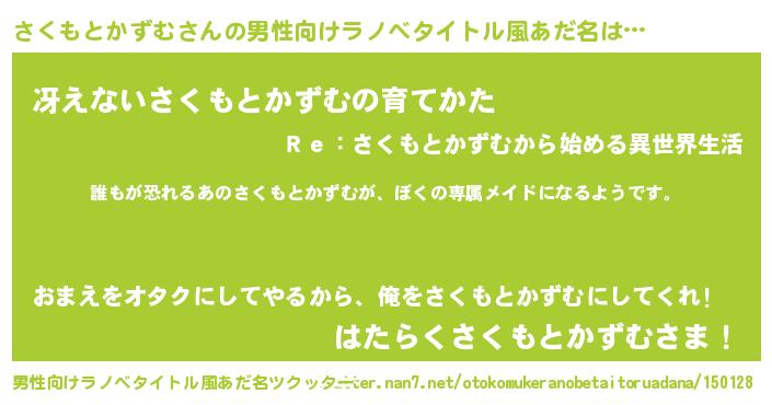 | 伝説のあだ名 | 『古文書に記された吟遊詩人さくもとかずむ』 |
