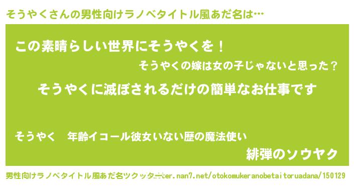 | 意味不明あだ名 | 『住所不定無職そうやく(5歳)』 |