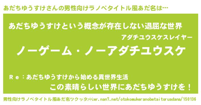 | 女子向けラノベタイトル風あだ名 | 『死神あだちゆうすけの再婚』 |