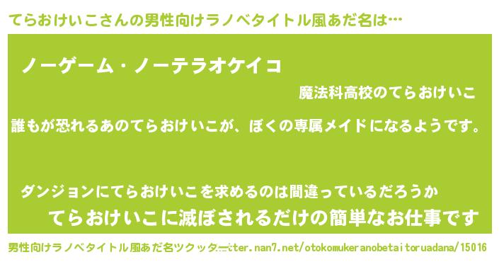 | 伝説のあだ名 | 『古文書に記された吟遊詩人てらおけいこ』 |