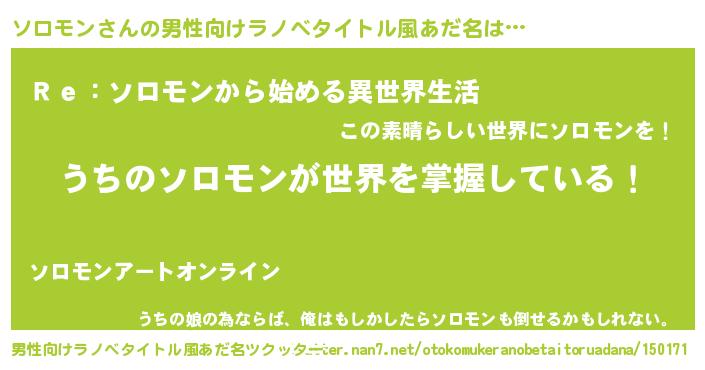 | 意味不明あだ名 | 『自称ソロモン』『ソロモンフォーエバー』 |