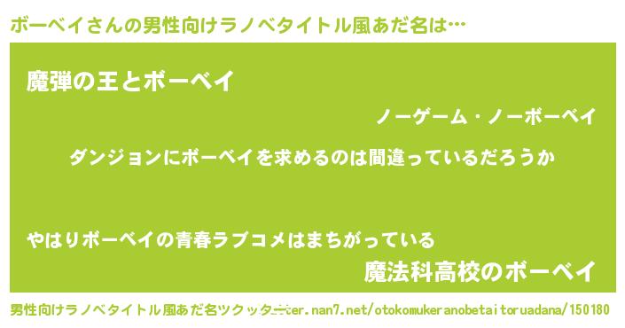 ボーベイさんの男性向けラノベタイトル風あだ名をツクッター!